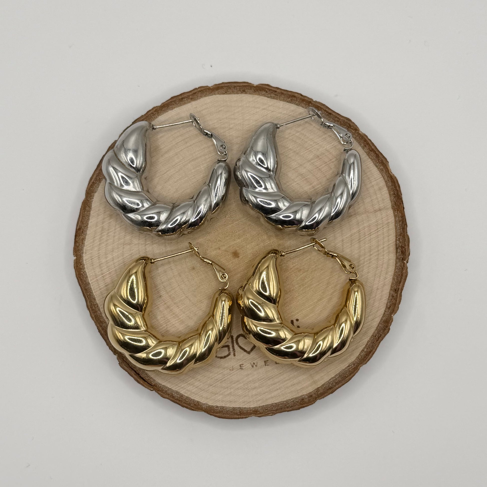 Orecchini in acciaio cerchio aperto con effetto spirale