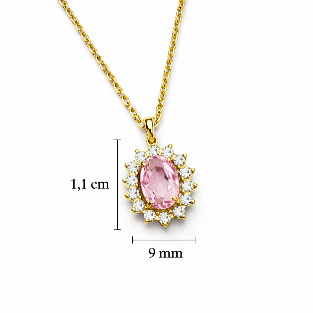Collana in acciaio con ciondolo modello kate, pietra color rosa