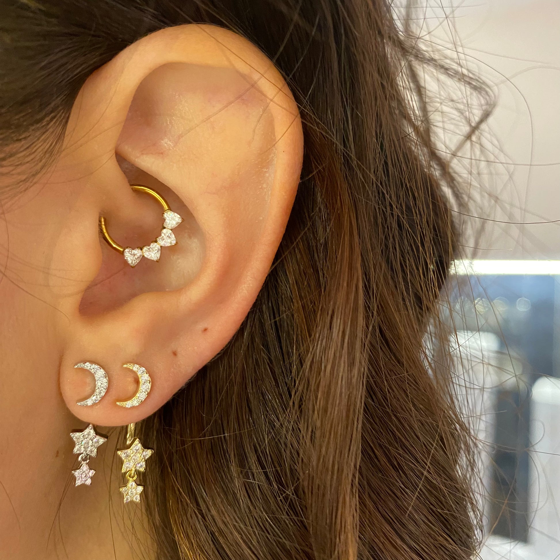 Mono orecchino in argento 925 con luna e stelle pendenti