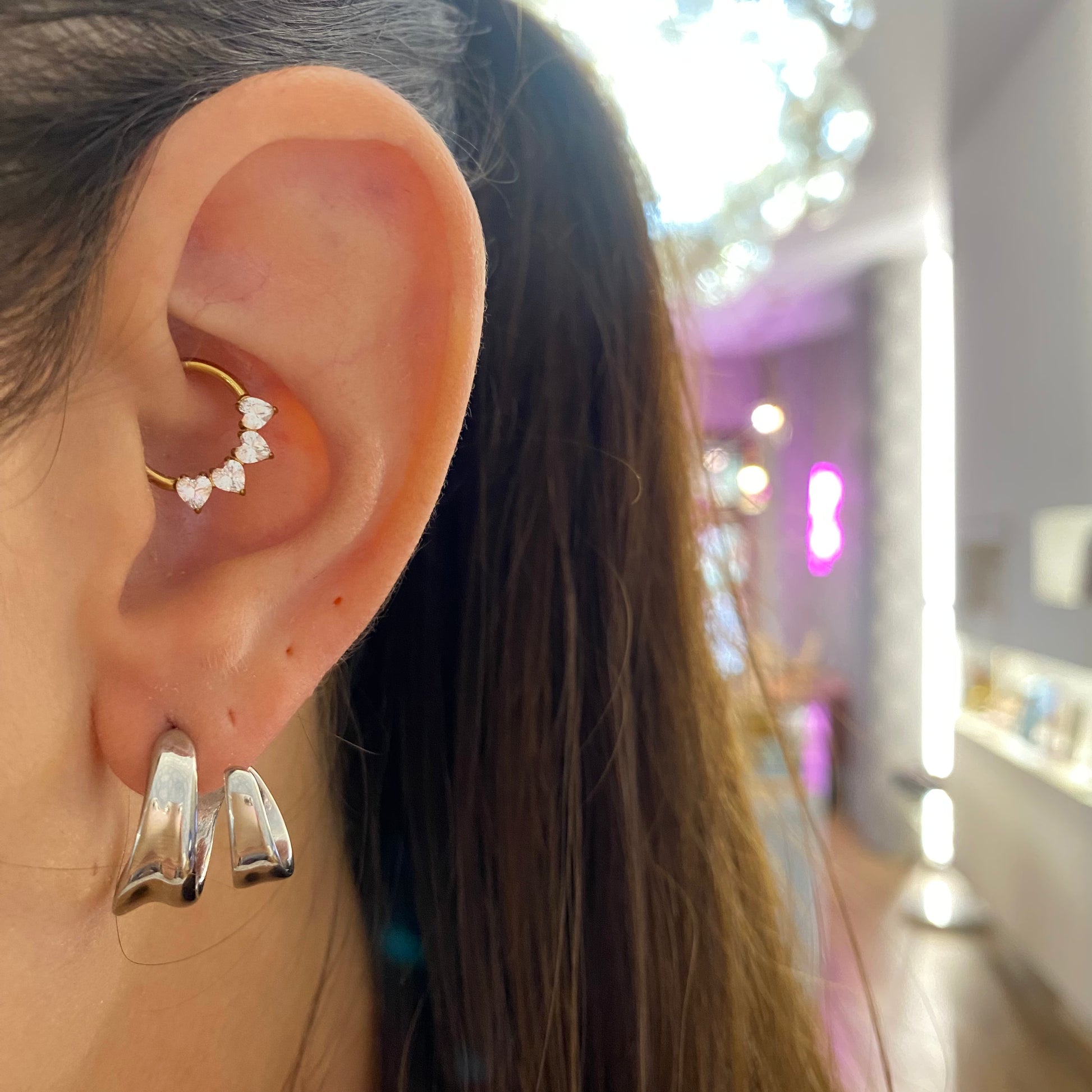 Orecchini in acciaio con doppio semi cerchio