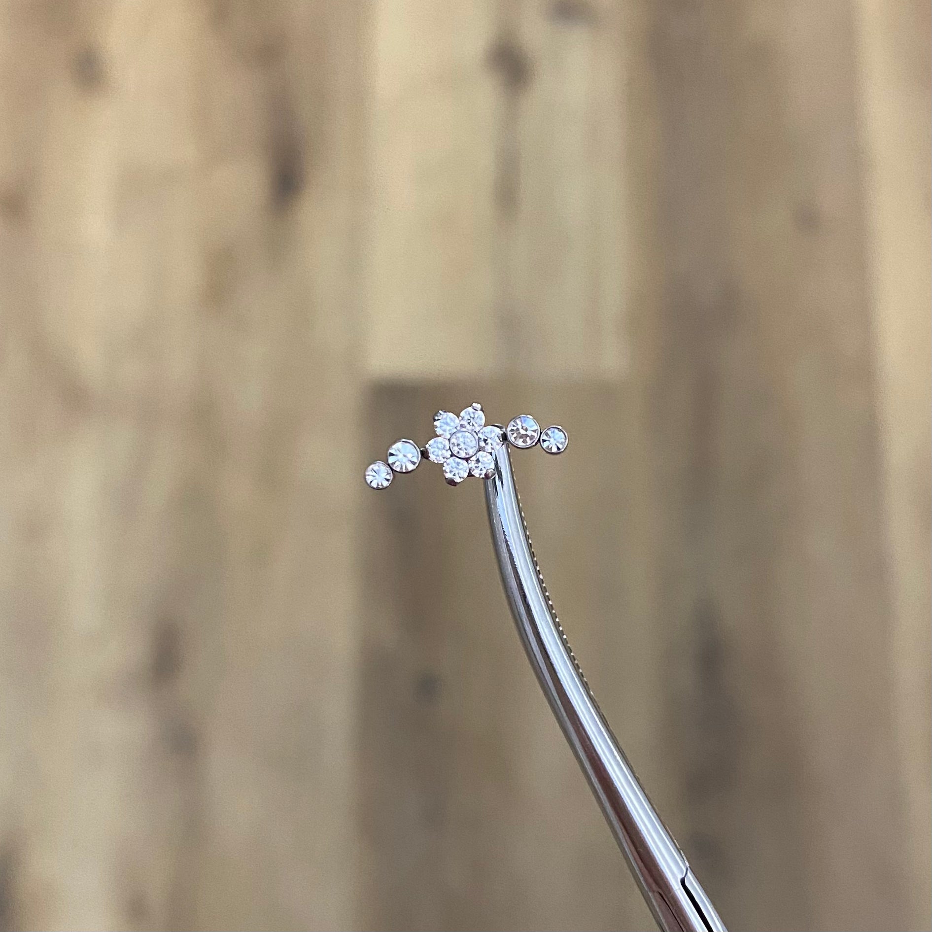Piercing in titanio con fiore e punti luce, ideale per flat e conch