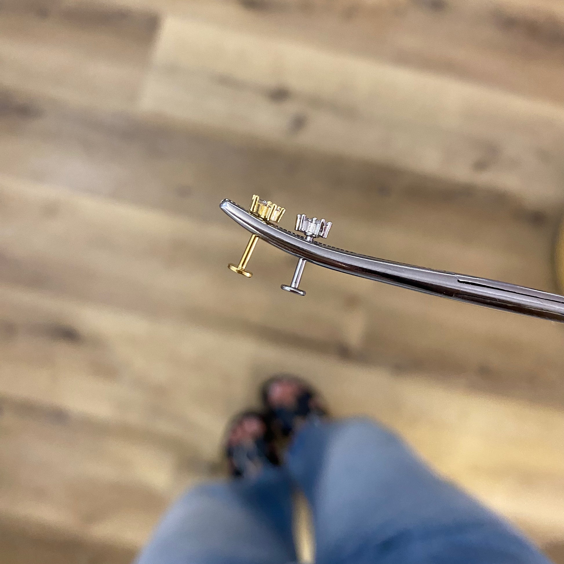 Piercing in acciaio con tre punti luce, lunghezza barretta 8 mm . Adatto per : helix, flat, trago, conch e lobo