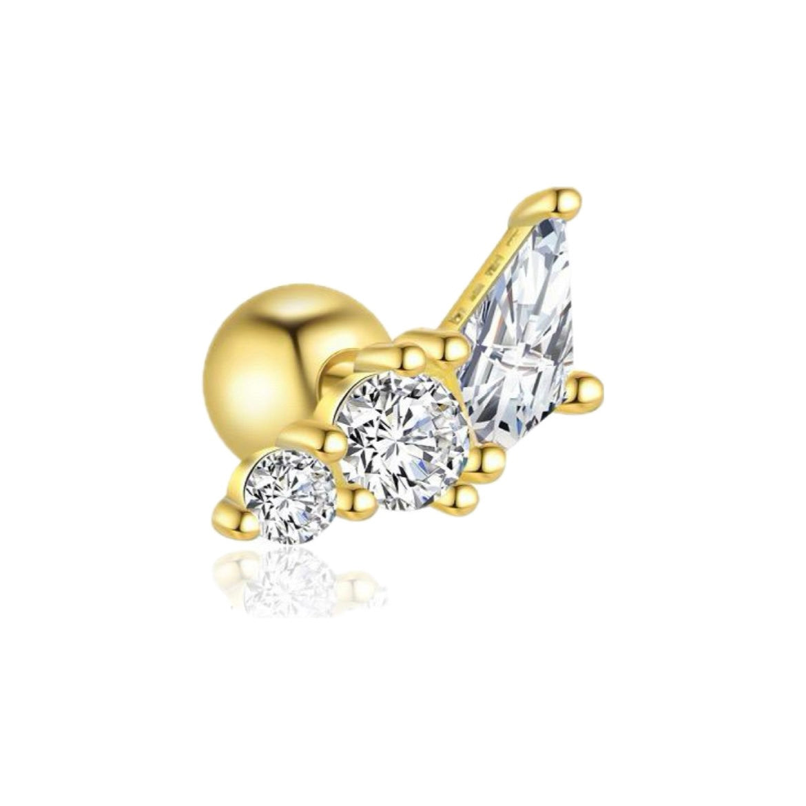 Piercing mono orecchino in argento 925 formato da tre punti luce di forma diversa